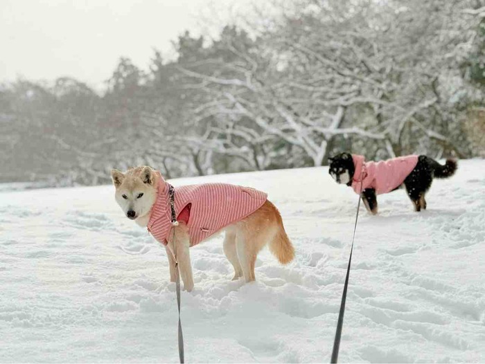 トイレは外派のいろちゃんとここちゃん。雨でも風でも雪の日だって朝晩のお散歩は欠かせません。かぼ父さんが不在だった日曜日。私がやるしかないと腹をくくってカボニーを走らせて城址公園へ向かいました。雪道の運転は本当に怖いです。何より怖いのはノーマルタイヤの車が