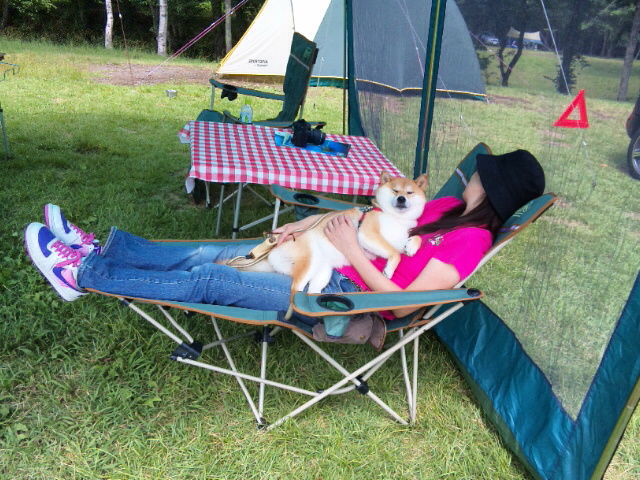 今回、かぼちゃん専用の椅子も用意しましたよ。 かぼちゃんは、今はもう、ぐっすり寝ています。 私達はビールからワインに移りました。 七輪でトントロと野菜を焼いて食べています。 とても静かで、涼しい夜です。 今日の更新はこれでおしまいです。 それではみなさ