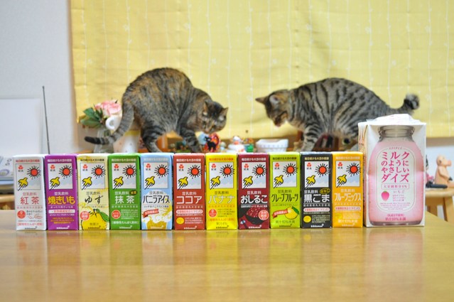 お正月に姉から貰った紅茶味の豆乳。 その美味しさに感動し、すっかりハマっています。 いろんな種類があるんですよ。 とりあえず、全部買っちゃった。 「今日はどれにしようかな~?」とワクワクしながら、1日1本飲んでいます。 私が好きなのは、紅茶とバナナとバニラ