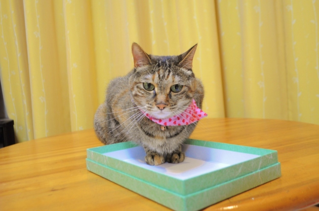一昨日の晩はこの箱に前足しか入れなかったつーちゃんですが昨夜は体ごと入ってくれました。今夜ははみ出して寝るつーちゃんの姿が見られるかな?************************「かぼすちゃんとおさんぽ。」は、ランキングに参加をしています。バナーを