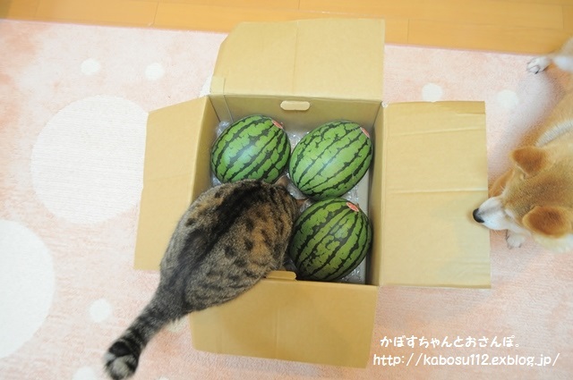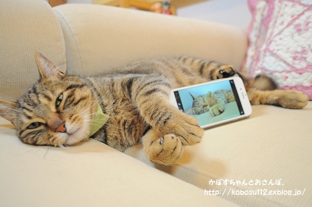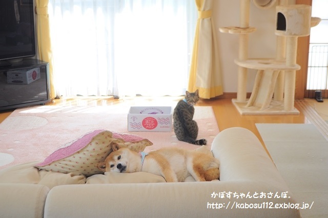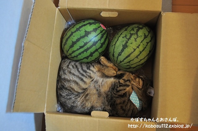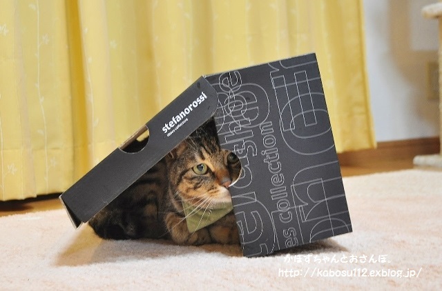 かぼちゃんがいいお顔をしていたので急いでカメラを取りに行きパチリとしたらお尻の下に違和感を感じました。あらやだ。こんなところに箱猫がいたのね。潰さなくって良かった…。************************「かぼすちゃんとおさんぽ。」facebook「か