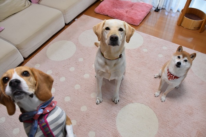 今日はこんなワンコが遊びに来てくれました。ビーグルのさくらちゃんと札幌から来たラブラドールのポロくんです。みんなとってもお利口さんでした(^O^) **