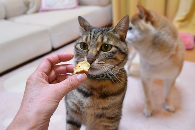 銀ちゃんにもみじ饅頭を差し出すと固まります(笑)つーちゃんは喜んで食べます。 **********************