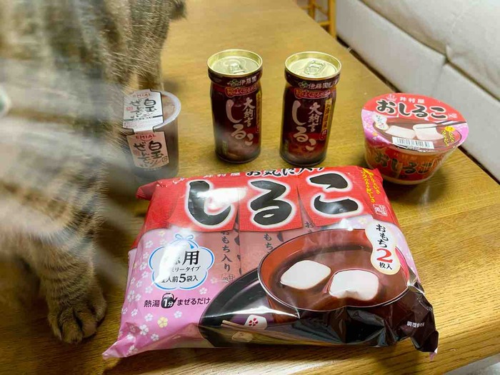 昨夜買い物に出かけたかぼ父さんに「おしるこ買ってきて!」とお願いをしたらこんなに買ってきてくれました。カップしるこを食べてあとは毎日ちょっとずつのお楽しみーと思っていたのですが朝起きたらリビングとキッチンがおしるこ砂漠になっていました(・・;)うっかり電子レン