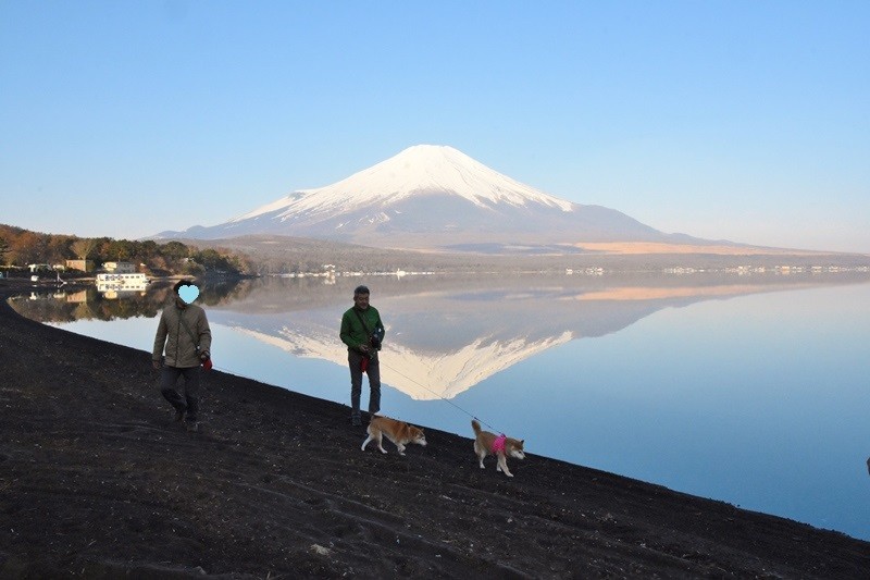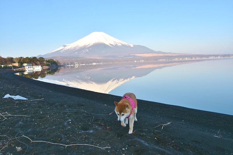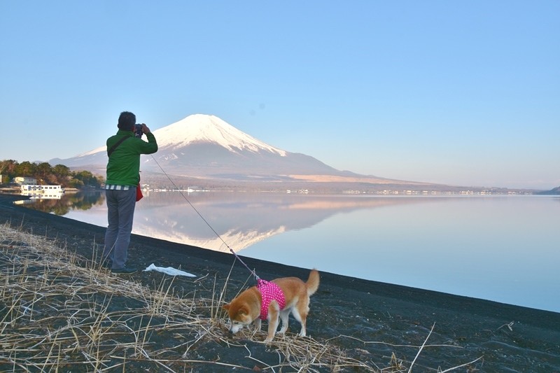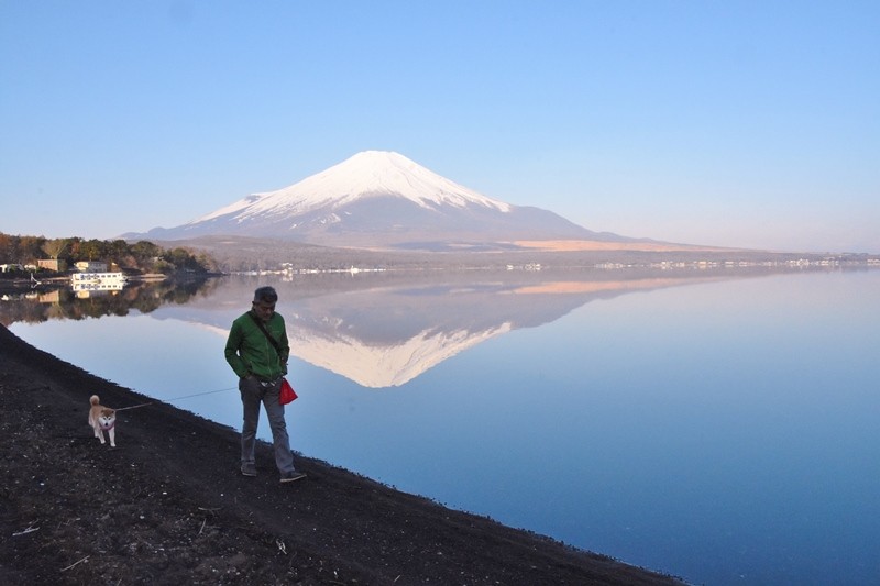 かぼちゃんは富士山をバックにかぼ父さんに抱かれて・・・。