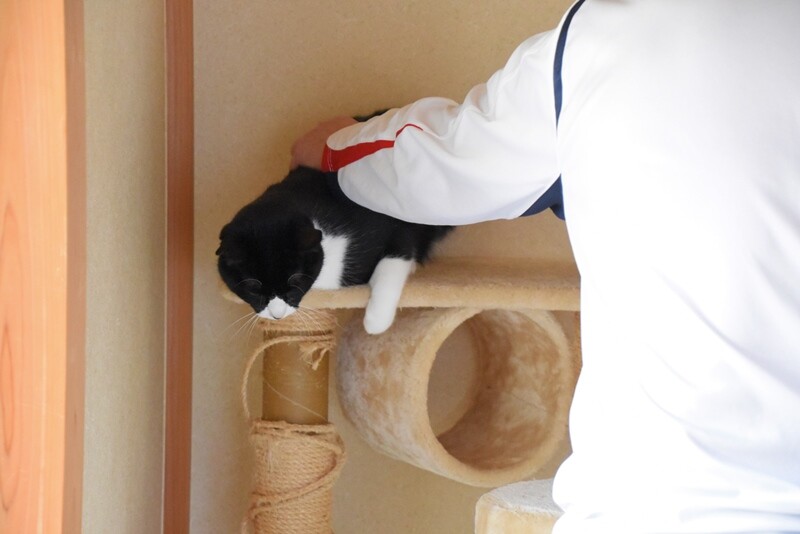 キャットタワーの上にいます。