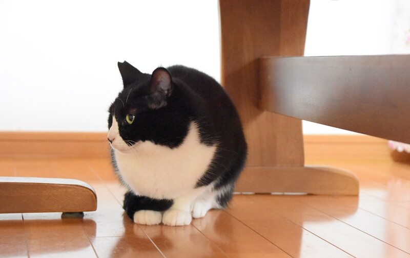 テーブルの下に隠れて