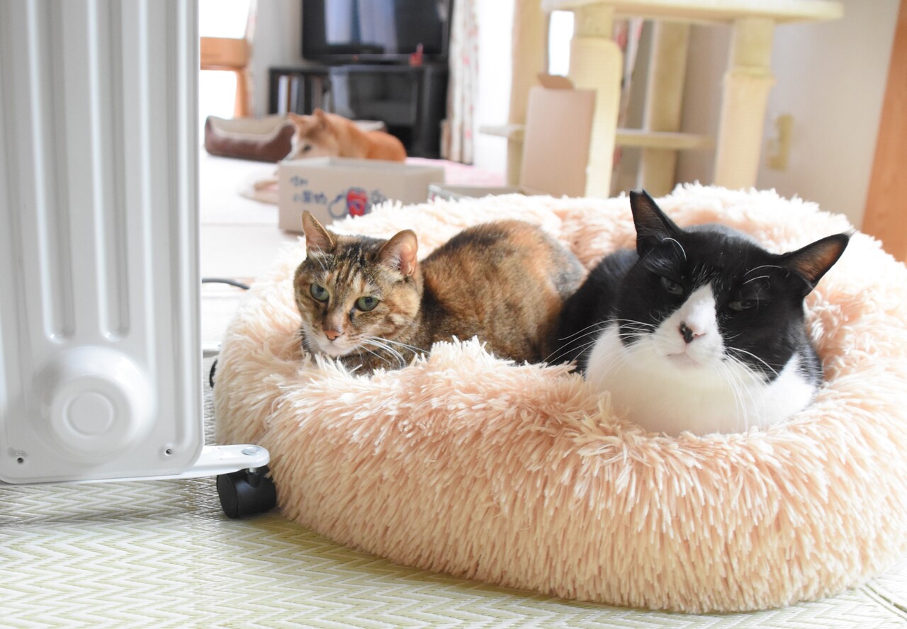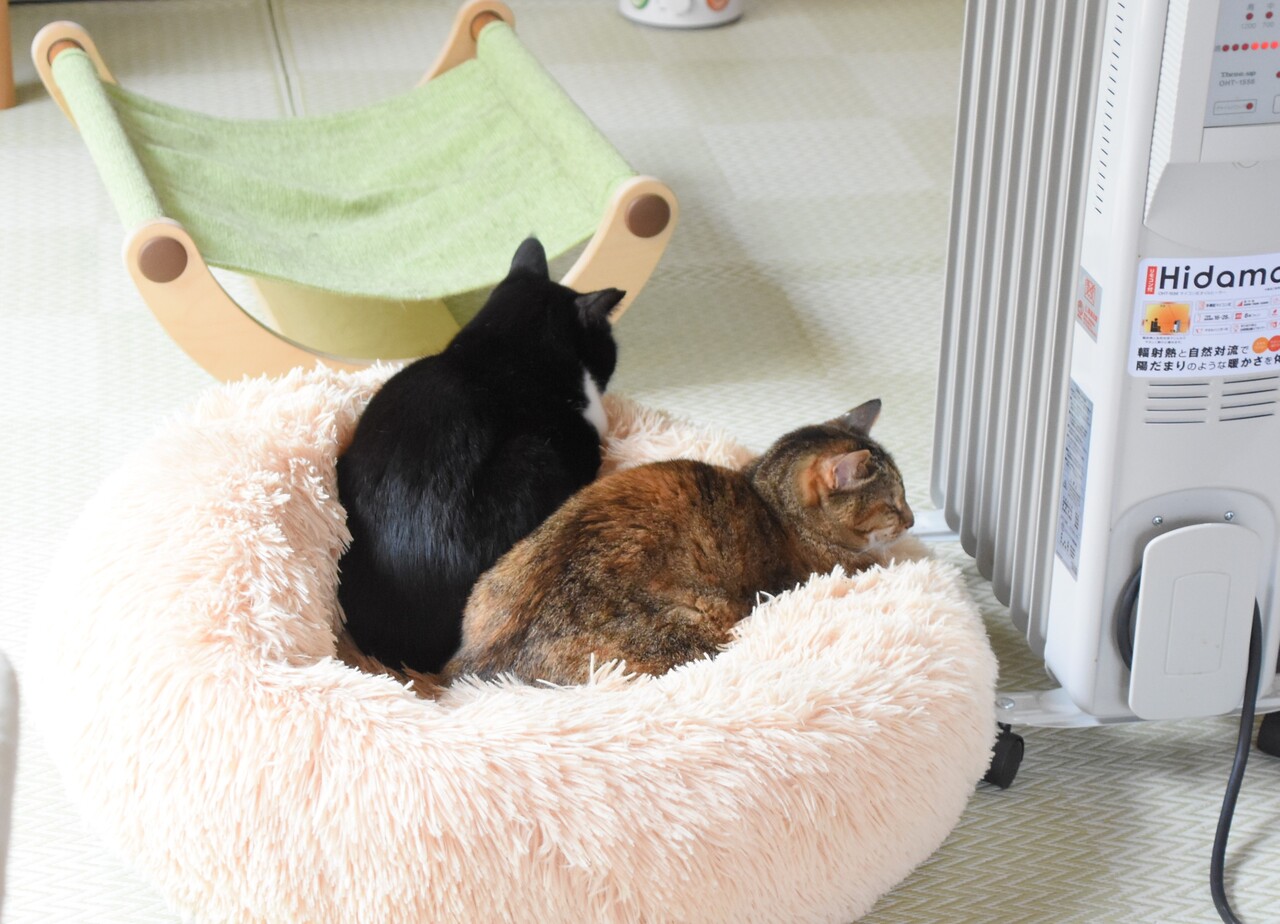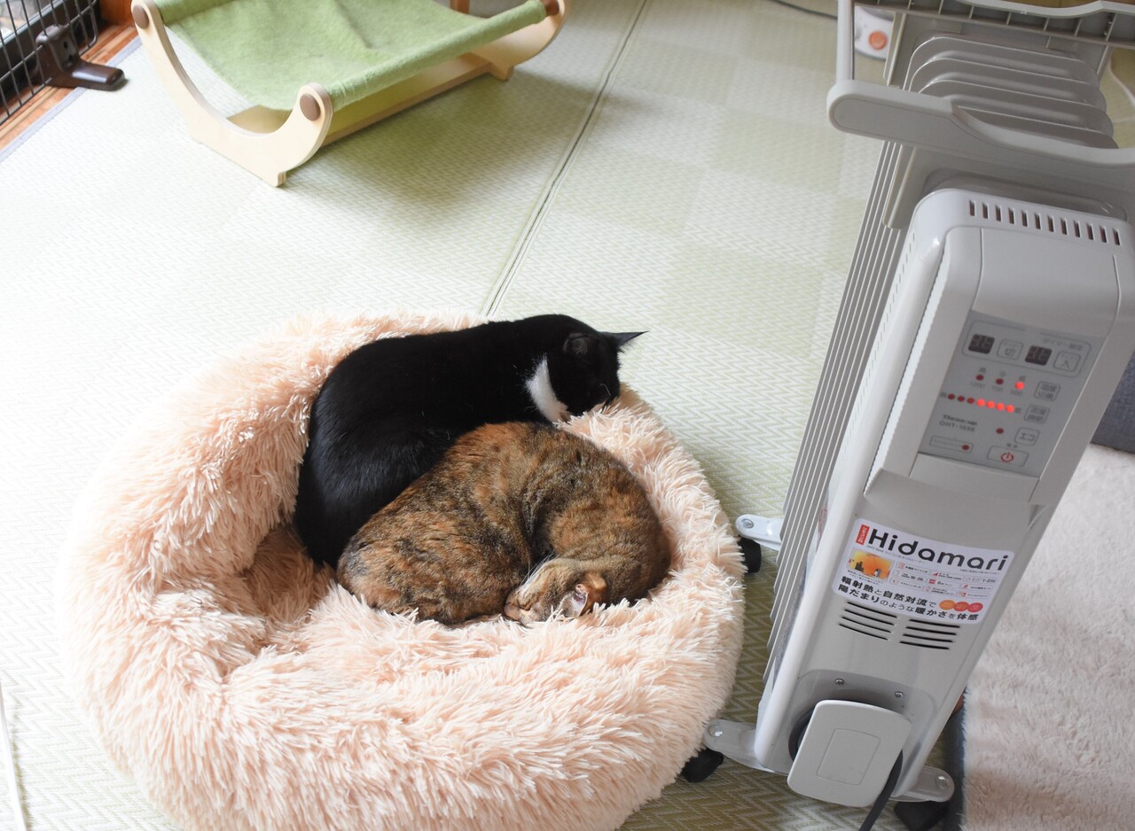 2022年10月11日 驚いた!いったいこれはどういうこと? 急に涼しくなった日に暖房機を出したらいつもの通りオニちゃんと銀ちゃんが…と思ったら!!なんと茶色は銀ちゃんではなくつつじ女王様でした。いやー驚いた(^^;これはいったいどういうことなの!?私にはさっぱりわからないので分析はウラーさんにお任せします!かぼちゃんの寝方はいつも危ういです。可愛いなぁとため息をつきながらパチパチしていたら片目だけ開けて私をチラリ。やば可愛い