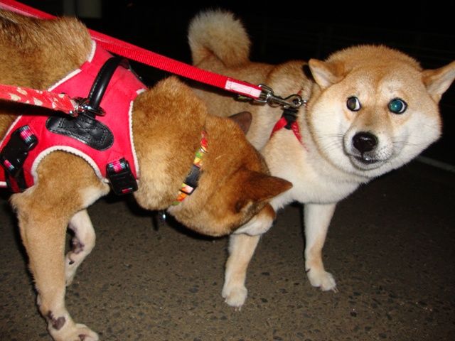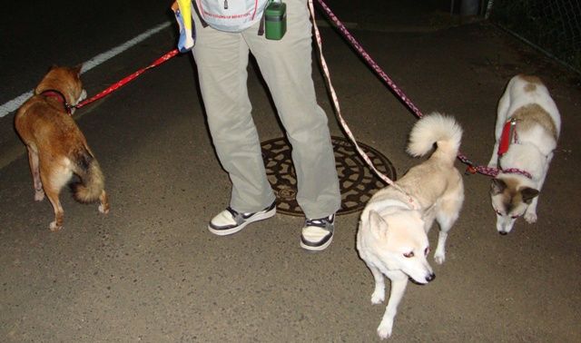 こんな祭りの夜に、犬を3匹も連れて歩いている凄い人を発見☆