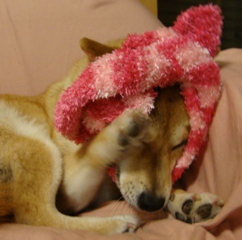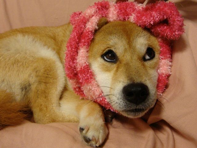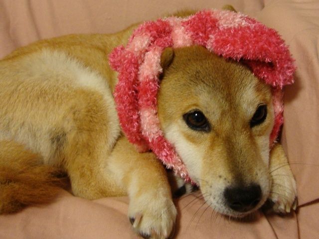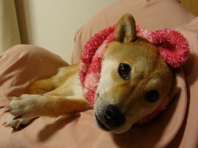 かぼちゃん、なかなか似合うわよ! 色鮮やかなピンク色。