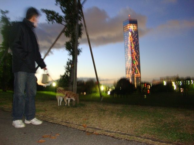 流れてくるクリスマスソングを聞きながら、暗い公園を散歩しました。