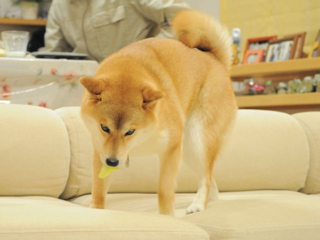 尻尾が、上を向いたり下を向いたり大忙し。