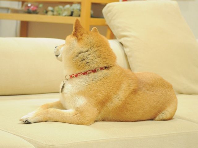 夕飯が済んで、ソファーの上でくつろぐかぼちゃん。