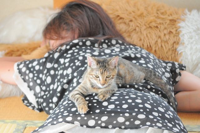 私の昼寝中に、つーちゃんたら・・・。でも、可愛い!