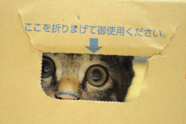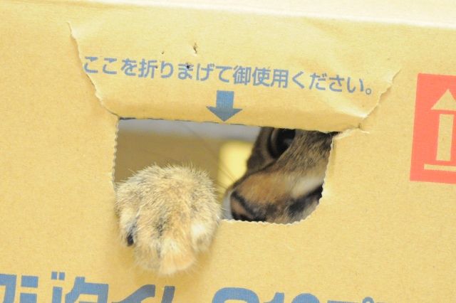 今夜のつーちゃんのお気に入りは、この段ボール。
