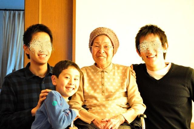 孫たちに囲まれた母の笑顔。