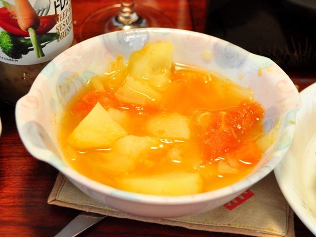できました! こうちゃん特製、カレー風味の野菜スープ!!