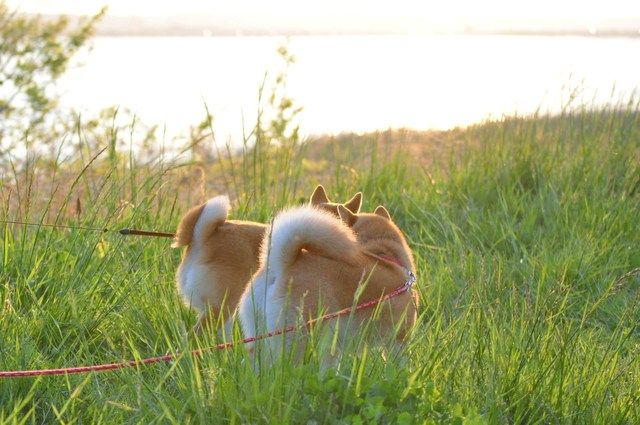 茶色と白のモフモフちゃん。