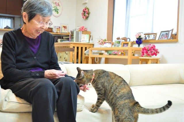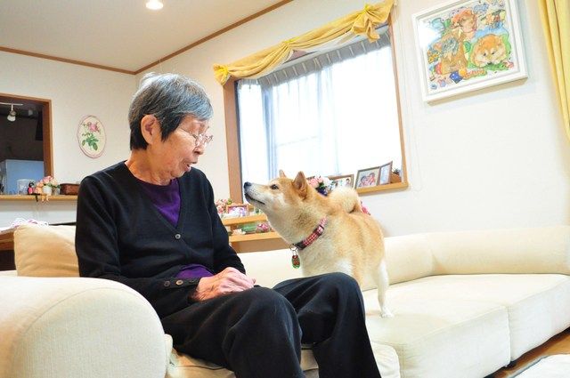 母の膝にピョンと乗ったつーちゃん。
