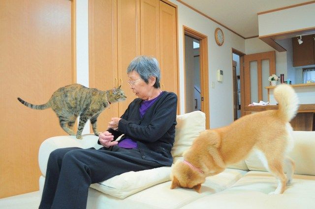 なんだか不思議なくらい、2匹に歓迎されている母です。