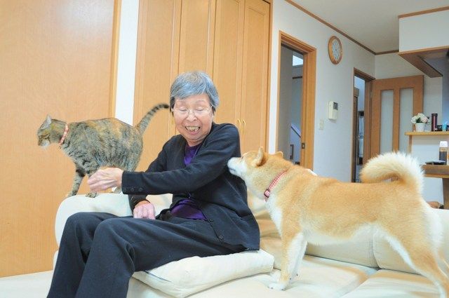 動物に触れたのは数年ぶりの母。