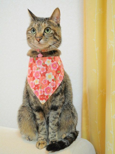 首輪を外した時に付ける迷子札として、バンダナを作り始めたそうです。