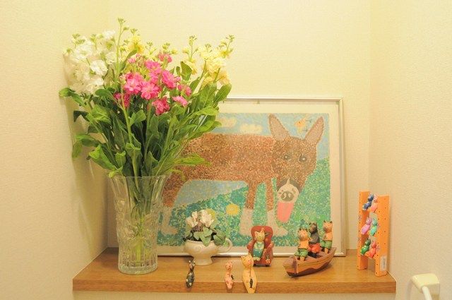 我が家は猫達がオモチャにしてしまうので、トイレにしか飾れません。