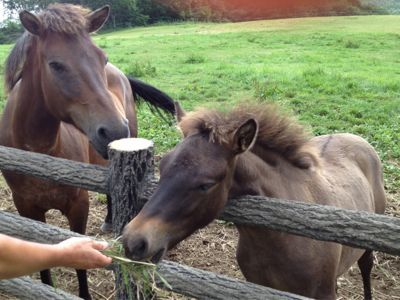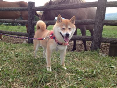 お隣の牧場でお散歩しましたよ。
