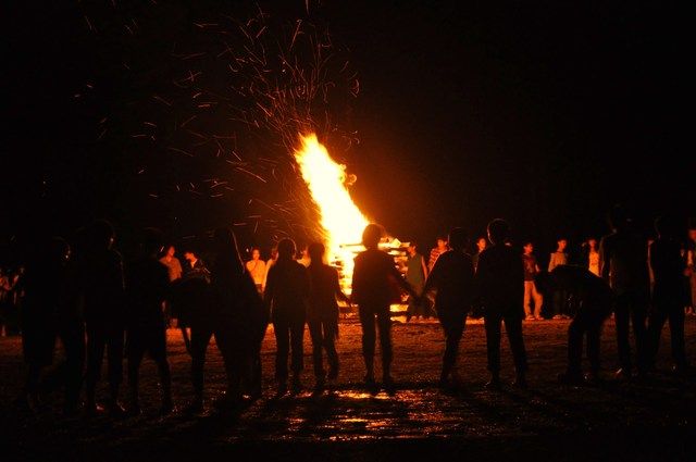 私は一人で、中学生のキャンプファイヤーを眺めながら、