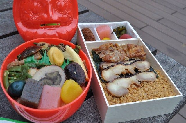 私達の朝ご飯は、毎年恒例のだるま弁当と鳥弁当です。