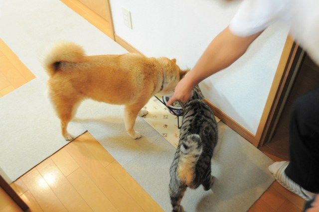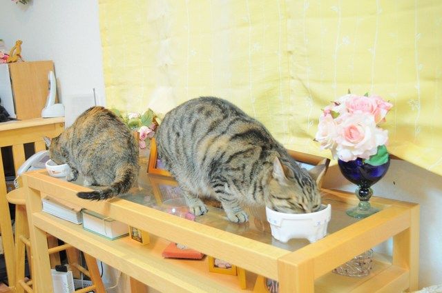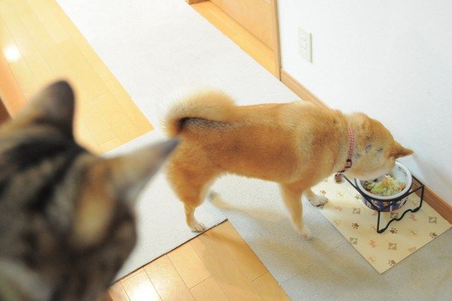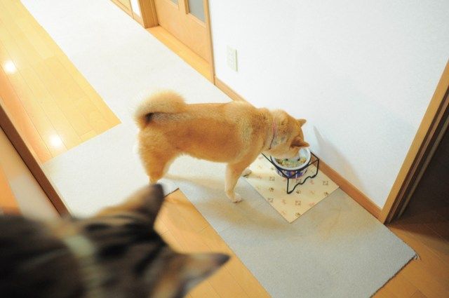 銀ちゃんは叱られても叱られても、毎回かぼちゃんの器に顔を突っ込みます。