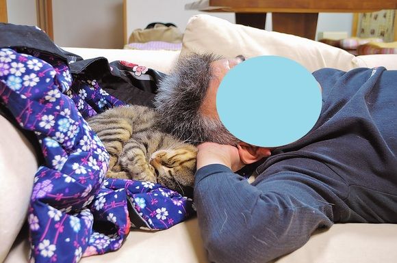 おっさんとニャンコが仲良くうたたね中( ´艸`)