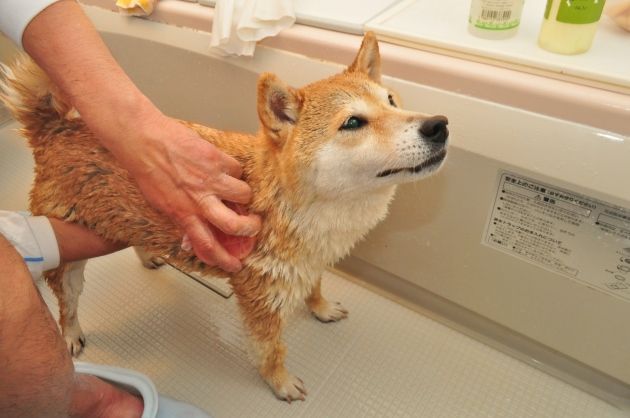 かぼすちゃん、シャンプー中、お利口さんですね♪