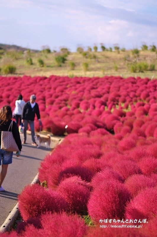 たくさんのコキア達も、そして彼岸花や紅葉もそうですが、自然界の赤って明るすぎず激しすぎない、優しくあったかな赤で癒されますね。