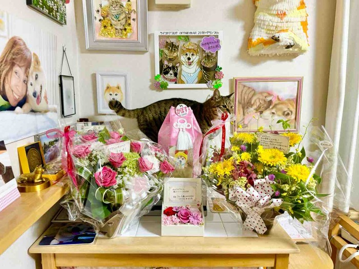 フラワーkaoriの店先がまるで花屋さんになってますよー!前から花屋ですけどね、店先はいつも花ではなく犬で溢れているので新鮮です。今日は仕事で公民館に行かなくてはならなくて、花屋のかおりさんにかぼちゃんを1時間半預かってもらいました。母の日を前にかおりさんが超