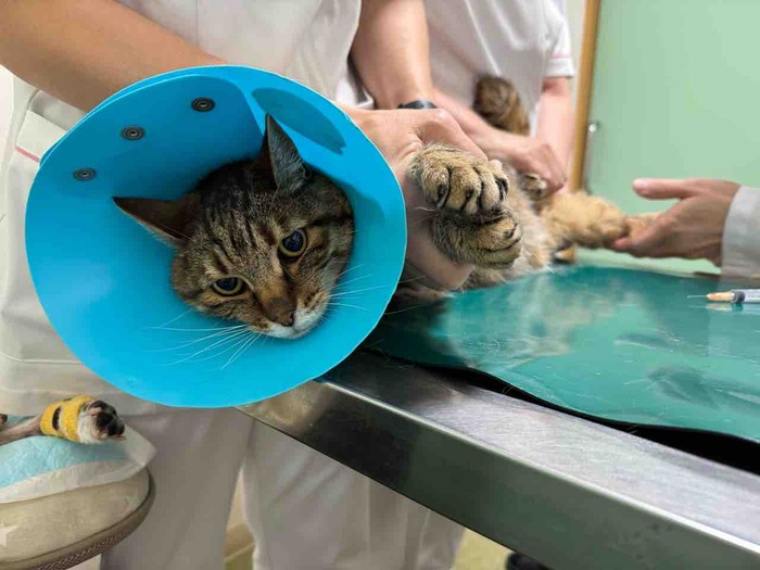スケーリングの術前検査のために病院へ行ったねいろさん。かぼちゃんみたいにブルブル震えたりはしないけど私にしがみついてくるからたまりません。私の腕に絡めるこの前脚は信頼の証でしょうか♡朝ごはん抜きで病院へ行き夕方までお預かりだったのに検査後にご飯を出され