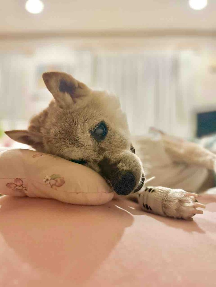 かぼちゃんが可愛くてたまらないと思う瞬間はね…目覚めた時に私を呼ぶんですよ。すぐに行ってあげないと激しく吠え続けるんだけど、抱き上げた瞬間にピタッと鳴き止んで、私の顔をじーっと見つめてくるの。これ、たまりません。それから車に乗せている時に、コンビニで買い