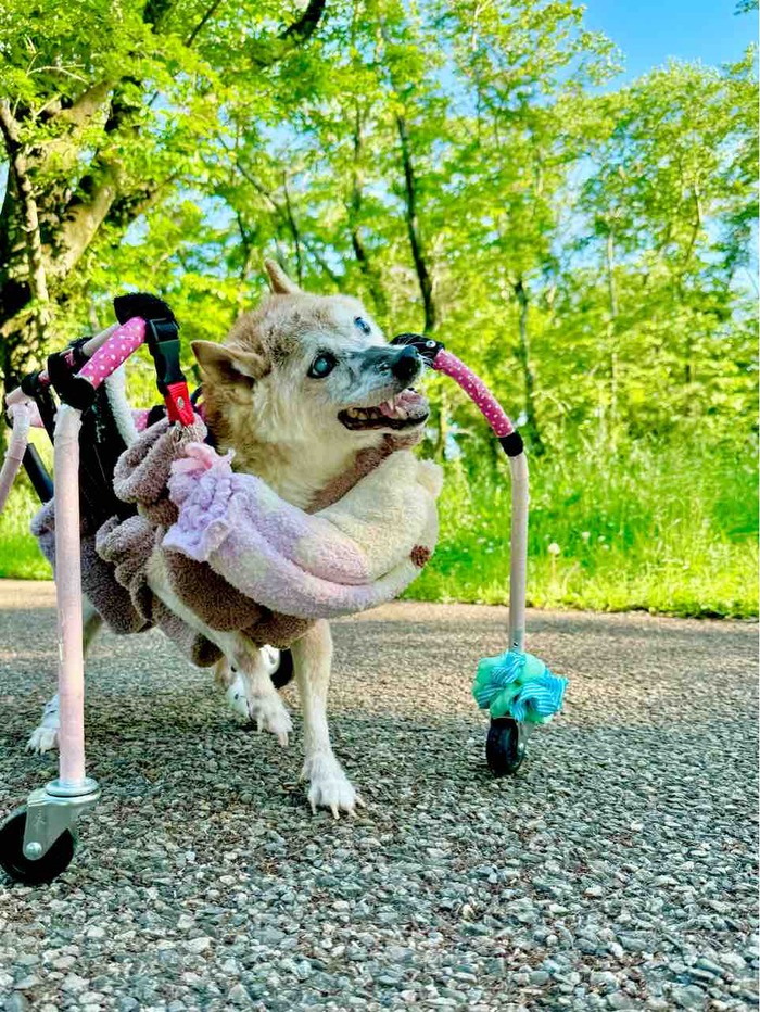 こんなお散歩で一日が始められることに感謝しています。かぼちゃんのセーターを今度はいろちゃんが着てる。かぼちゃんと歩いた道を今はいろちゃんと歩く。心の中ではいつもかぼちゃんを感じています。かぼちゃんが写真を撮った場所でいろちゃんも挑戦するのですが歩くことが
